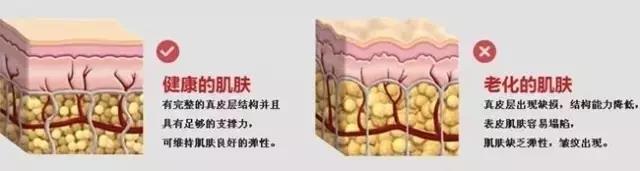 随着年龄的增长,胶原蛋白和水分逐渐流失,导致支撑皮肤的胶原肽键和弹力网断裂,从而造成皮肤塌陷。